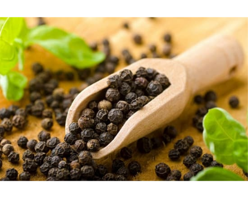 Black Pepper (Piper nigrum): Black pepper or kali mirch is the dried, mature but unripe fruit or berries of a perennial climbing vine cultivated as a plantation crop. It is considered as the “king of spices” because it is the largest used spice in the domestic and industrial sectors.